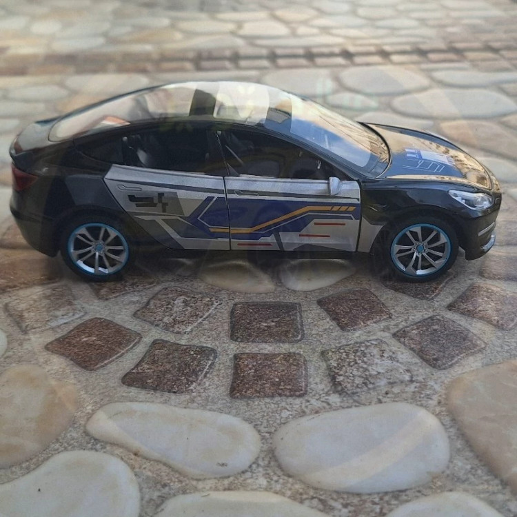 ماکت تسلا مدل3فلزی عقب کش 6 درب بازشو صداوچراغ وبوق دارآینه ثابت چرخ جلو چپ وراست شو مقیاس 1.24 سقف شیشه ای